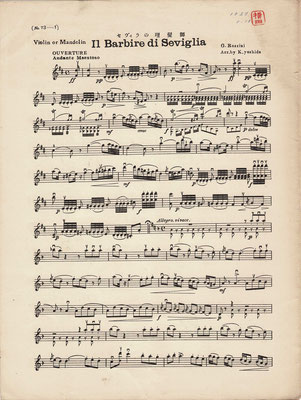 シンフォニー ヴァイオリン・マンドリン樂譜「ゼビラの理髪師」(シンフォニー樂譜出版社、大正14年[1925年]12月初版)