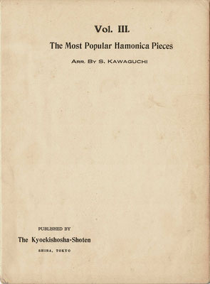 『Vol. III. The Most Popular Harmonica Pieces』(共益商社書店、大正12年[1923年]7月初版)の外表紙、タイトル頁、