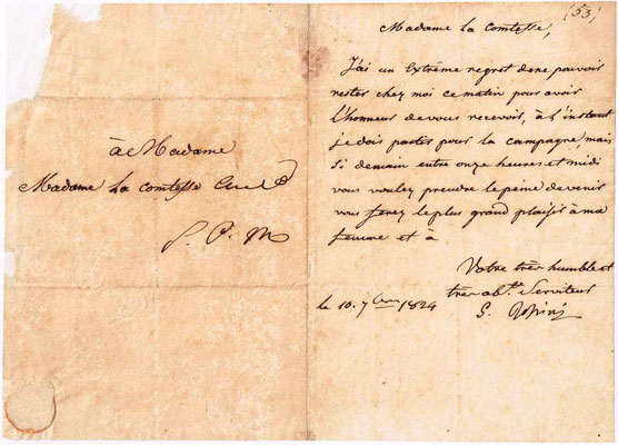 パリの[判読できず]伯爵夫人宛。フランス語(代筆者不詳) |