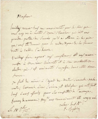 パリのオデオン劇場監督宛、フランス語 |