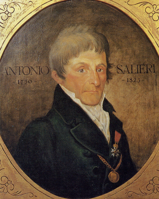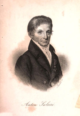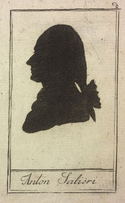 「サリエーリのシルエット、オーストリア国立図書館」「E.Haderによる肖像のキャビネット・カード、1882年。ヴィーン劇場博物館」「リーデルによる銅版画(上記)への彩色。ライプツィヒ、1802年。ニューヨーク公共図書館」「ヨーゼフ・ヴィリブロルド・メーラー(Joseph Willibrord Mähler,1778-1860)による油彩、ヴィーン楽友協会。Wikimedia」「油彩の肖像画、レニャーゴのフィオローニ財団博物館。Comune di Legnago フェイスブックより」