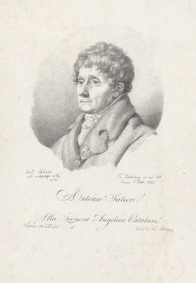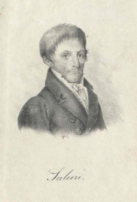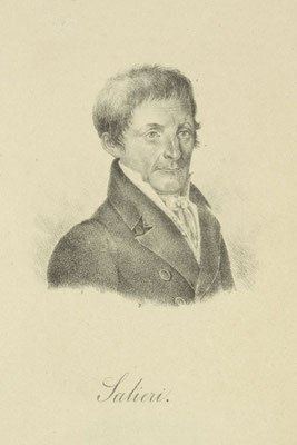 銅版画やリトグラフによるサリエーリの肖像画は世界の音楽図書館に所蔵されており、筆者も1点所蔵しています(下記)。これとは別に、油彩の肖像画や19世紀に写真版で複製された肖像も存在します。ここには所蔵館のデジタル複製から、肖像部分を中心に周囲をトリミングして掲載します。(水谷彰良)